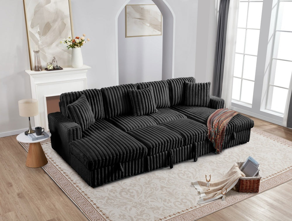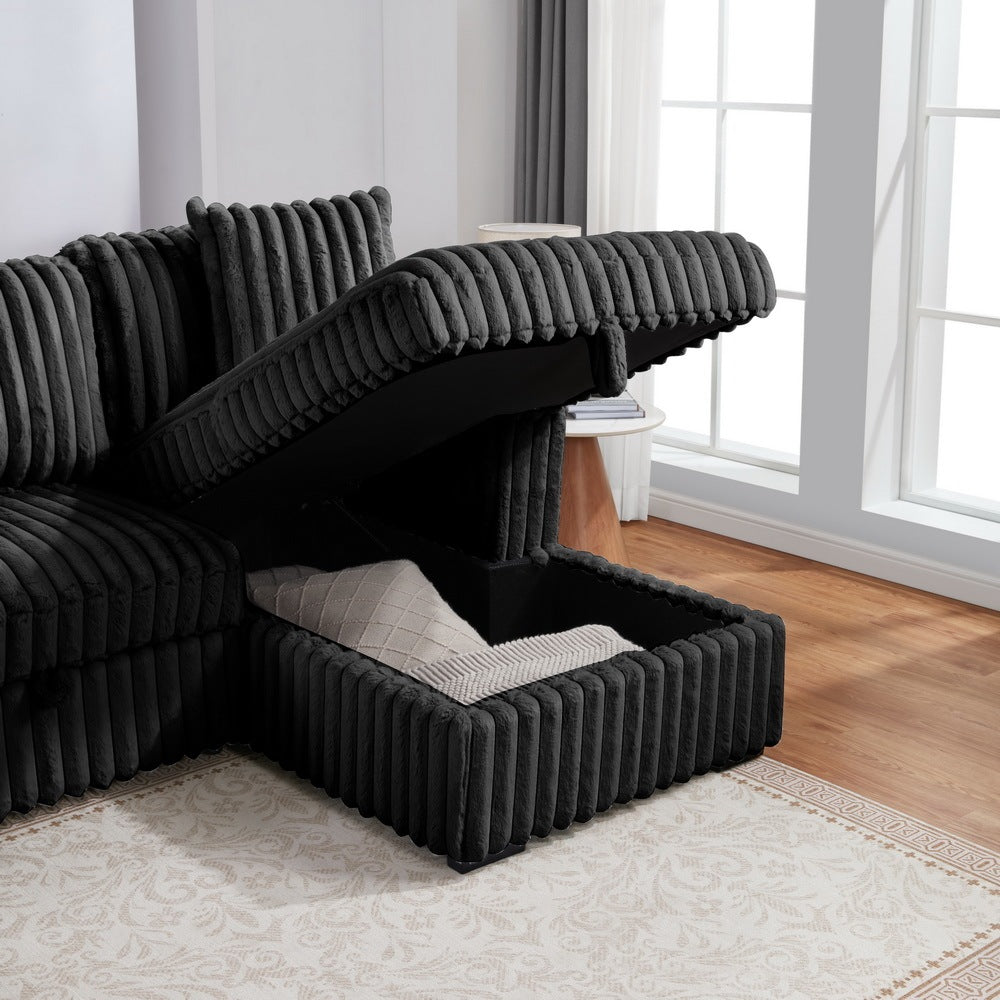 - Double built-in storage units integrated into the chaises, maximizing space utilization. Effortlessly organize cluttered items and maintain a tidy and appealing living area.