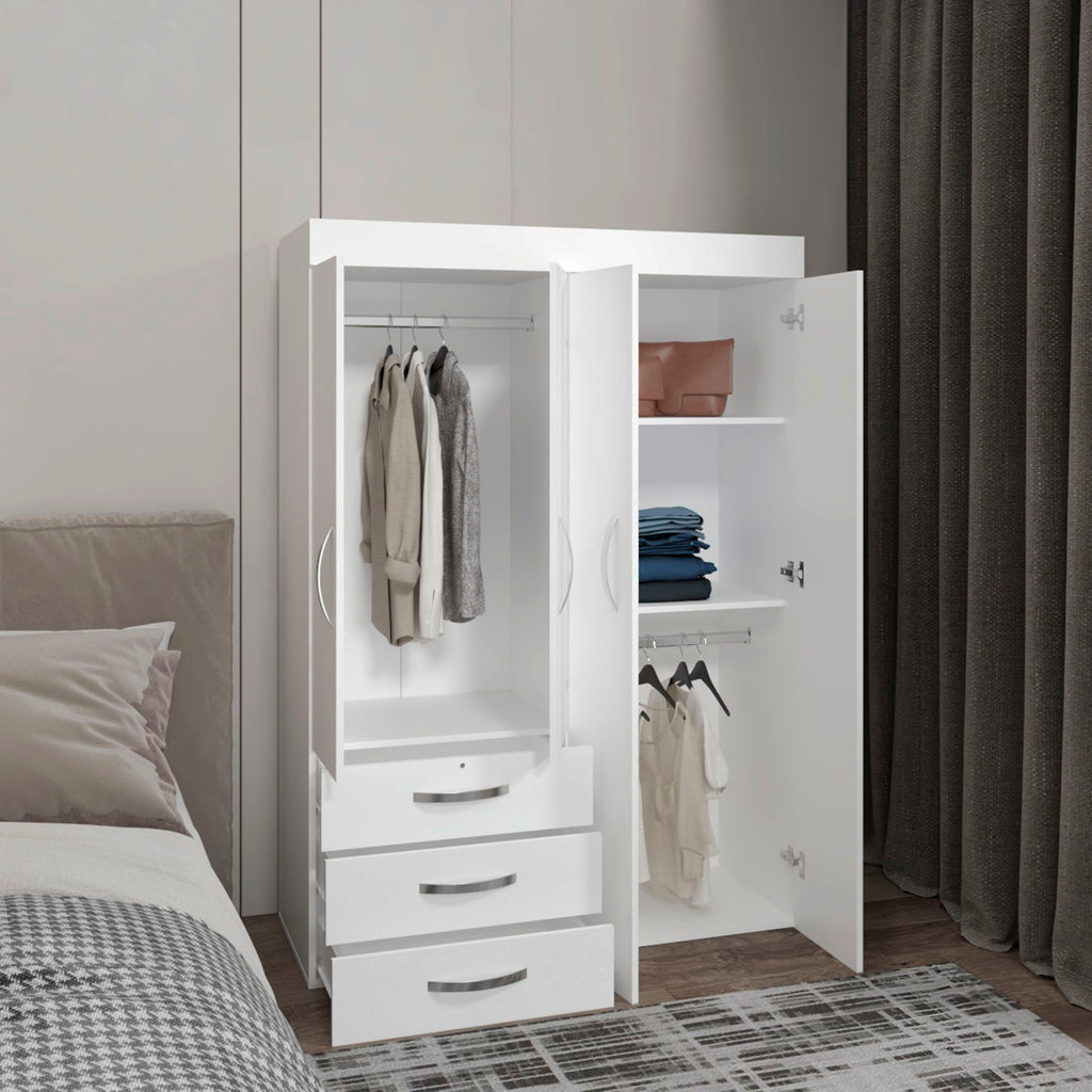 - Three lower drawers offer dedicated space for smaller essentials like undergarments, socks, or folded apparel.