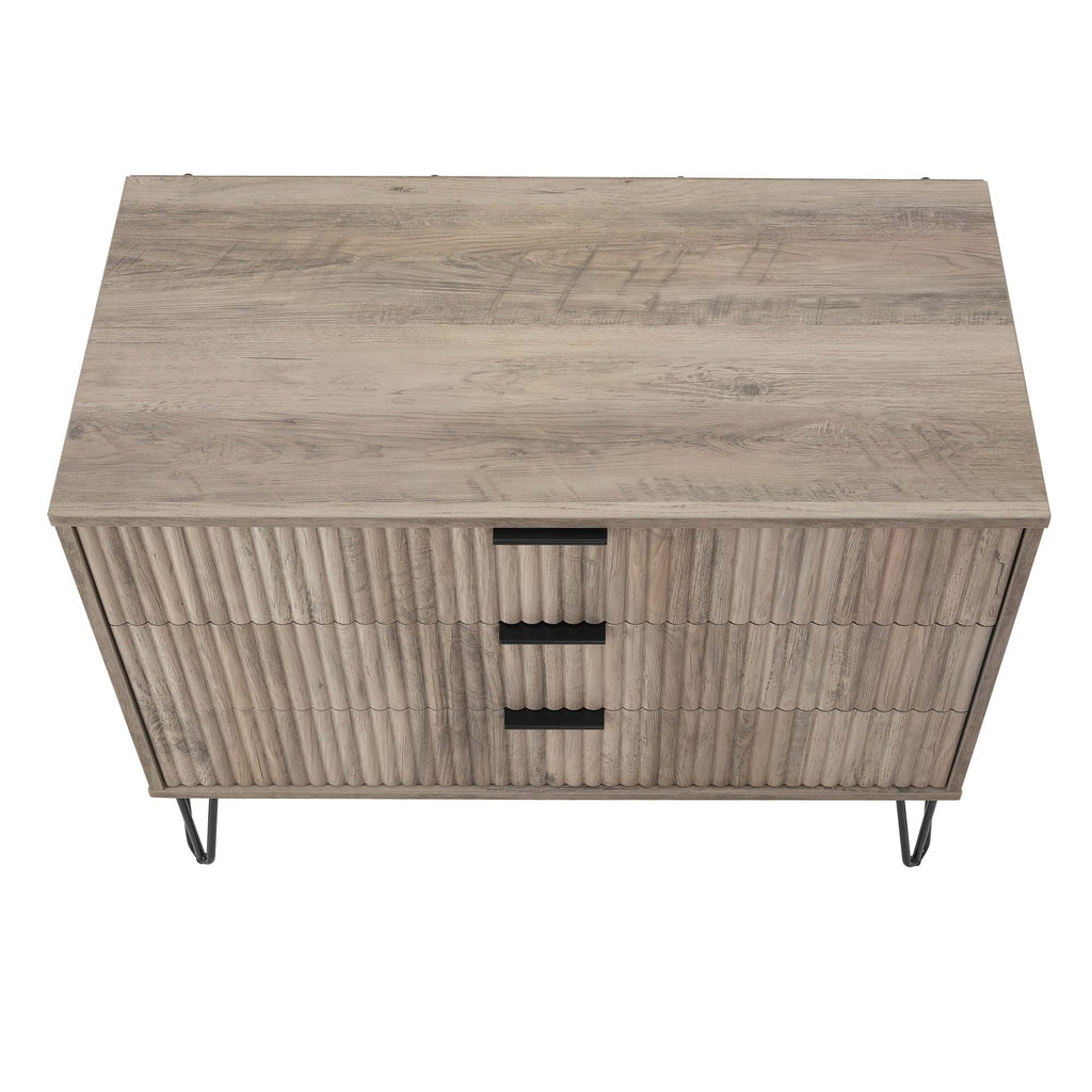 - Includes 3 Full Extension Drawer with Top Drawer Designed in Vertical Textured Ribbed Lines.