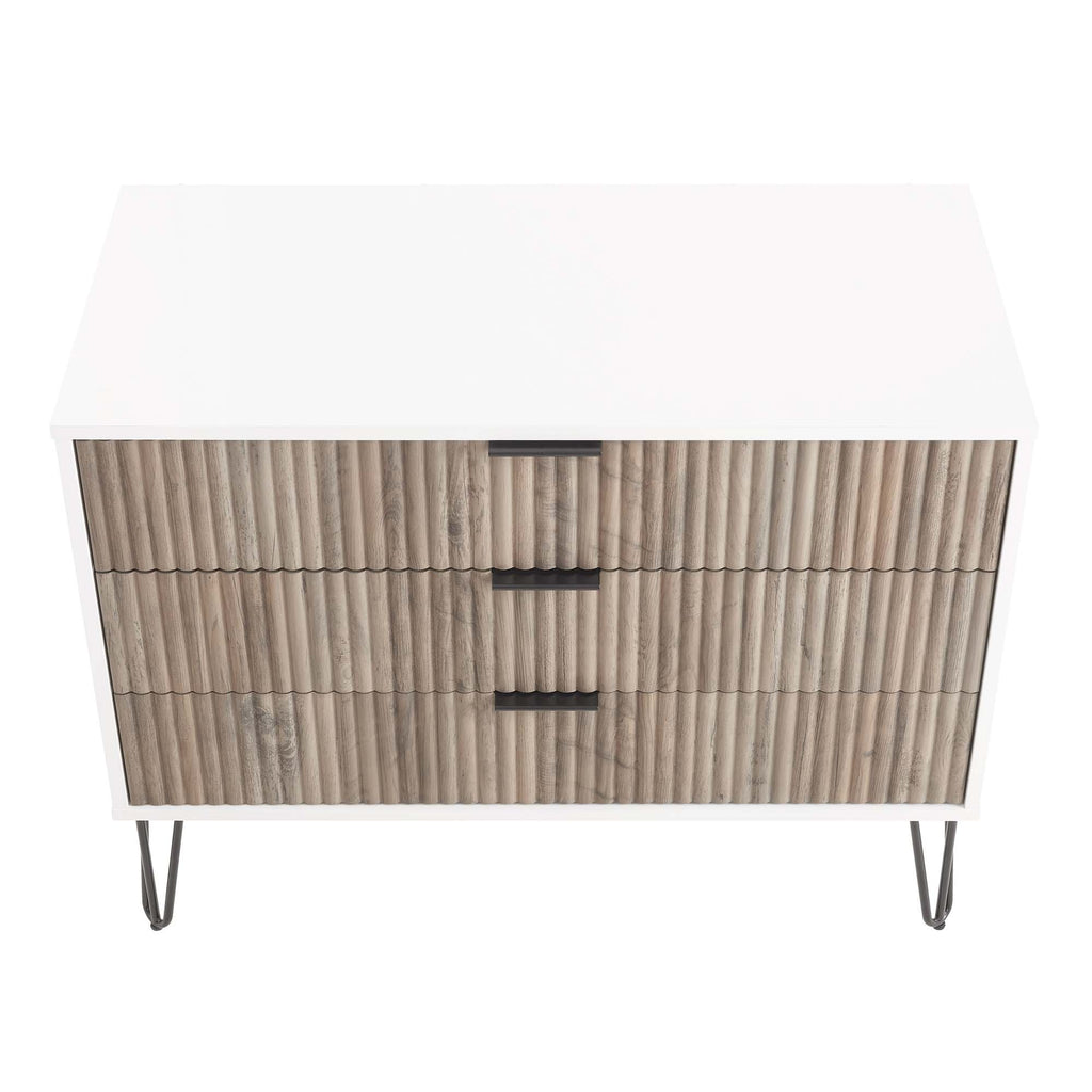 - Includes 3 Full Extension Drawer with Top Drawer Designed in Vertical Textured Ribbed Lines.