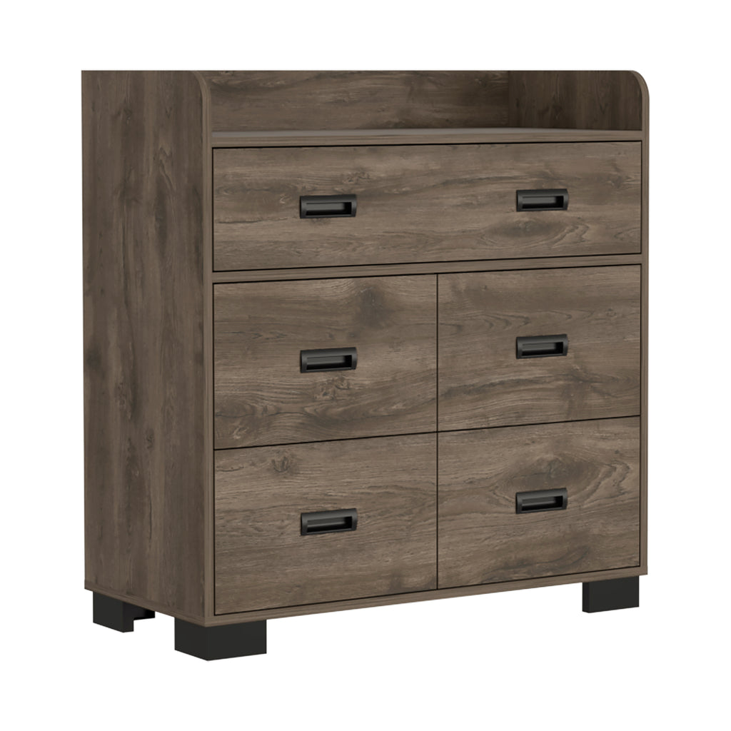 The double drawer provides ample space for larger items, ensuring easy organization and convenient access to essentials, while the four single drawers offer additional storage for smaller items. The durable superior top is perfect for displaying decorative pieces or serving as a workspace, and the dark brown finish adds a rich, elegant touch that complements various interior styles.