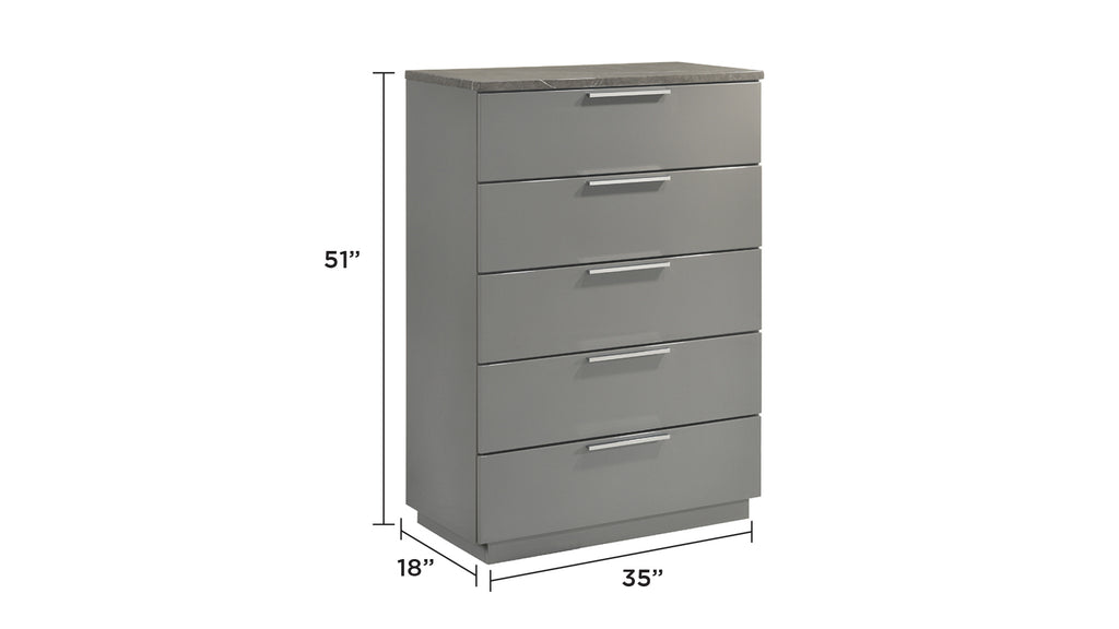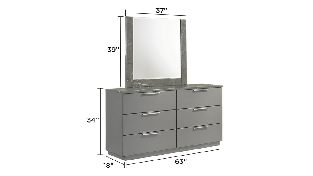 - Two-Tone High-Gloss Marble and Lacquer Finish: The luxurious marble-patterned surfaces on the bed, dresser, nightstand, and chest elevate the overall aesthetic.