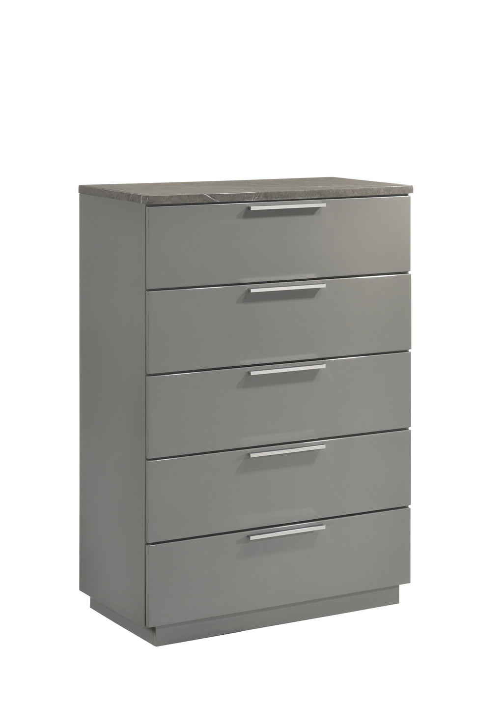 Elara Queen 5-Pc: Two-Tone Marble/Lacquer LED Storage Gray