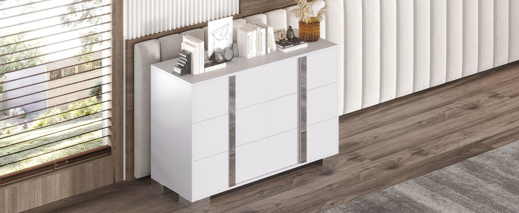 Modern Dresser with Metal Handle,Mirrored Storage Cabinet with 6 Drawers for Bedroom, White