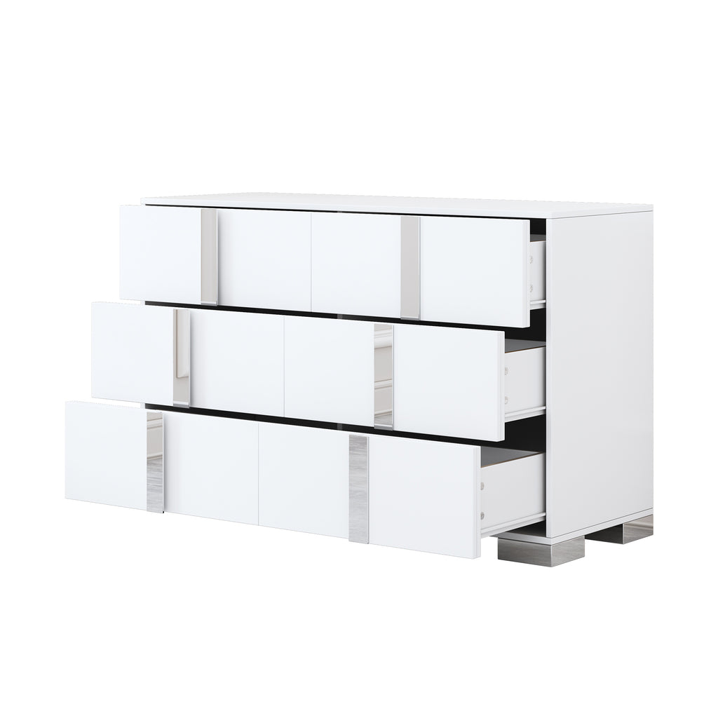 Modern Dresser with Metal Foot,Mirrored Storage Cabinet with 6 Drawers for Bedroom, White
