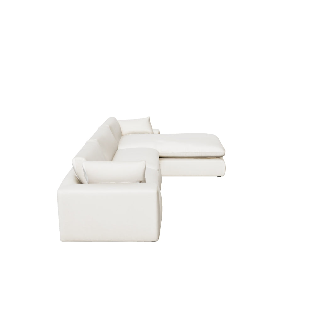 Down with uptown style. This sectional goes to town with a high-design aesthetic, sleek sophistication and sumptuous comfort that are temptingly affordable. Wide track arms, softened by plush side pillows, offer a welcoming look and feel, while back pillows and seat cushions with fluffy feather fill bring added flair and indulgence. Best of all, the modular design lets you stage the pieces solo or group them in various configurations to suit your mood.
