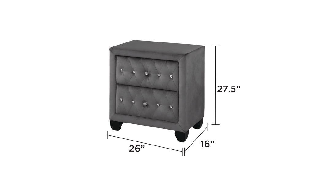 This modern bedroom set offers both elegance and functionality, centered around a luxurious upholstered bed with a tall, tufted headboard that adds a touch of sophistication to any bedroom. The bed is the highlight of the set, designed to be the focal point of your space, providing both style and comfort. Its tall headboard enhances the room's vertical space, creating a dramatic statement. The set also includes a spacious dresser and a mirror that complements the design, with the option to add a chest for even more storage. The nightstand provides convenient bedside storage, completing the ensemble with practicality and elegance. This bedroom set ensures that your space is not only stylish but also highly functional.