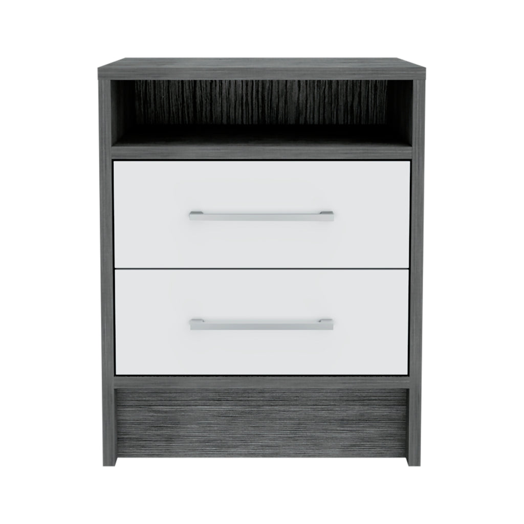 Eter 2-Drawer Nightstand End Side Table - Smokey Oak / White