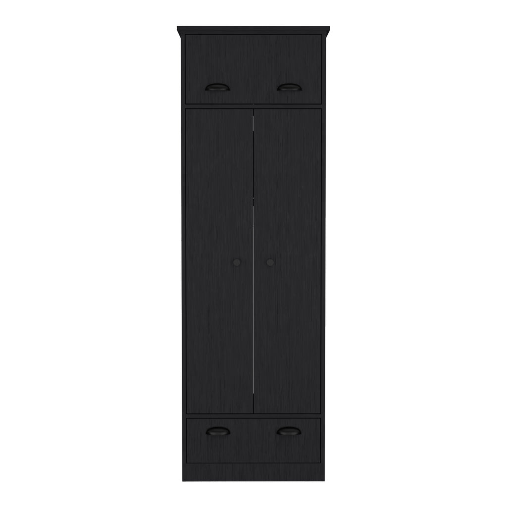 - Both drawers are equipped with chic handles, adding a touch of sophistication and enhancing the overall visual appeal of the armoire.