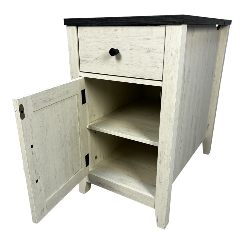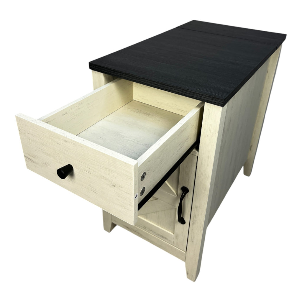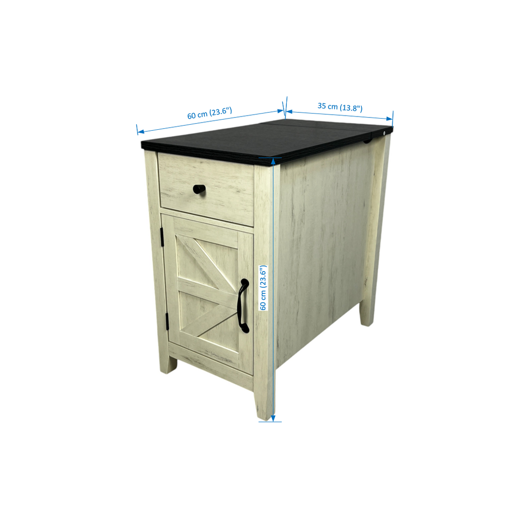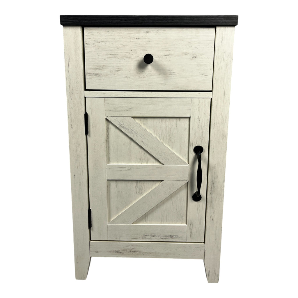 - 4.The spacious top, a small pull-out drawer, and cabinet with a barn door offer sufficient space .The tabletop can be used for display of your book, artware, potted plant or photo frame etc.. The drawer is suitable for storing pens, notepads, remote controls and accessories. And, the cabinet is suitable for storage, good protection against dust and dirt. Such a versatile cabinet will surely make your life more tidy and orderly.!