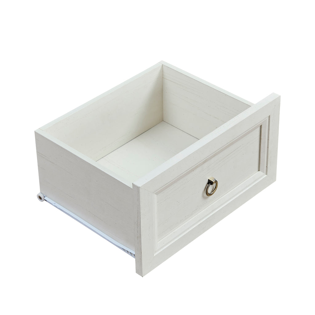 Metal Slides and Round Knobs Drawers Slide Easily Spacious drawers provide ample storage space, ideal for organizing clothing, linens, and other essentials in any room. Its metal round drawer pulls in an antique brass tone complete the vintage French country style