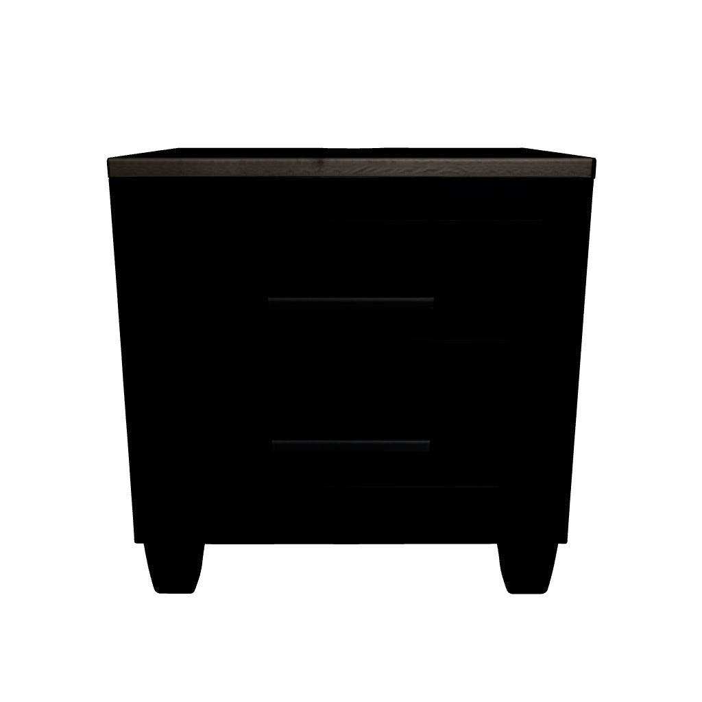 This nightstand is casual contemporary style simply done right. Its two-tone color scheme features a rich brushed black main color accented with a beautiful dusty grayish brown wood tone. Two drawers with sleek black pulls offer plenty of storage for your bedside essentials. The nightstand marries tech and clean-lined design, with a dual USB charging port along the upper back edge to keep your devices powered all evening long.