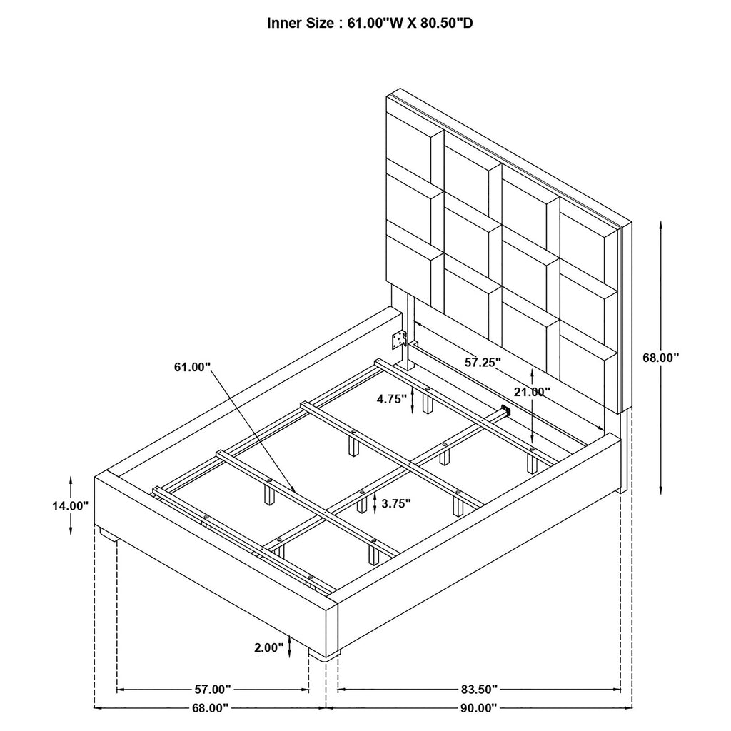 - Tall headboard showcases a sophisticated 3D grid design, adding depth and visual interest to the bedroom centerpiece