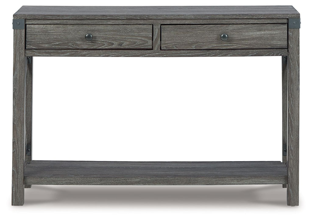 Open the door to modern farmhouse style with this console table. The beautiful woodgrain look and classic crossbuck metal accents are a cool touch, while the lower shelf provides surface space for fashionable home accessories. A pair of smooth-gliding drawers is the answer to the daily, where-are-my-keys question.