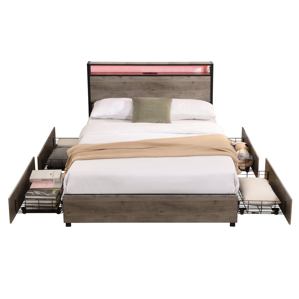 - Practical Storage Bed 4 storage drawers provide ample storage space, perfect for storing clothing, pillows, sheets and bedding items. With pulleys, drawers slide in and out easily, even on shag carpet.