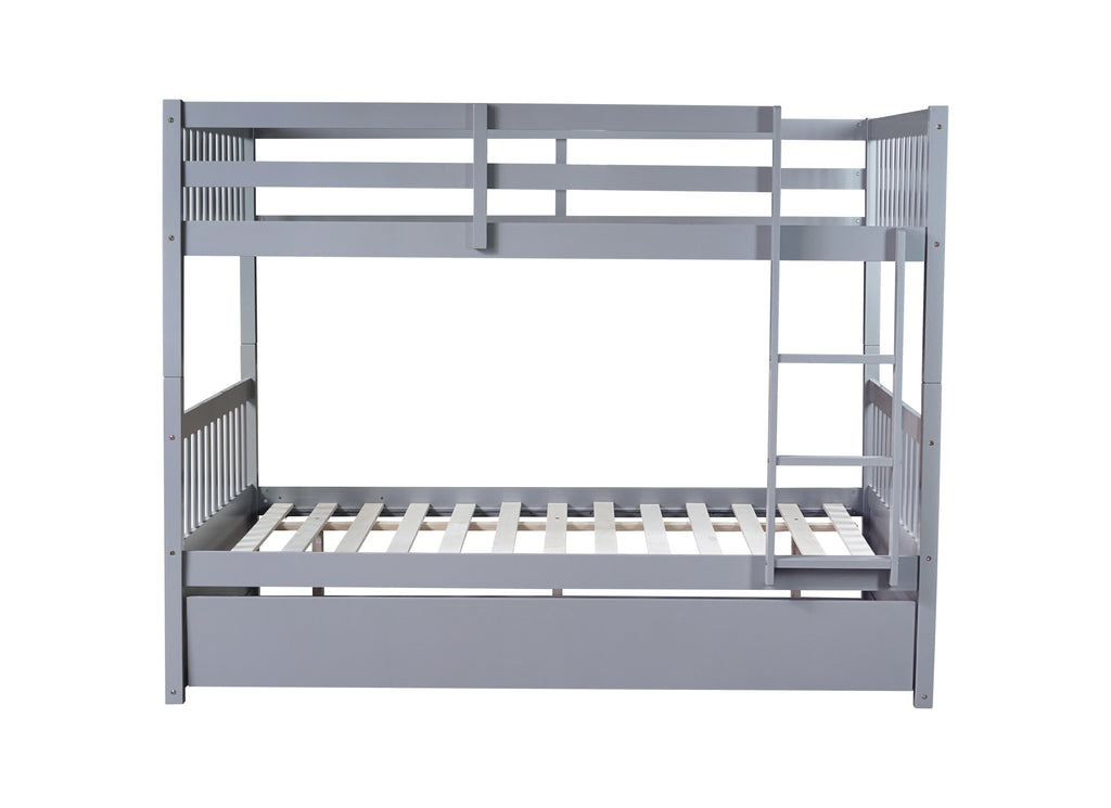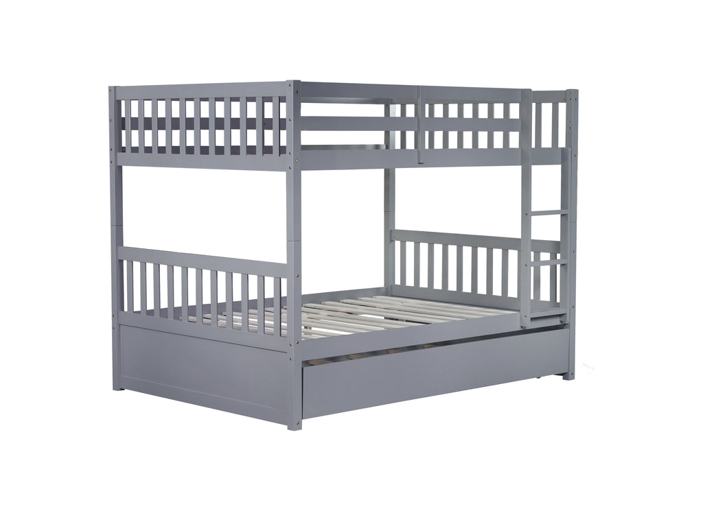 Full Over Full Rubber Wood Bunk Bed with Trundle, Ladder and Guardrails