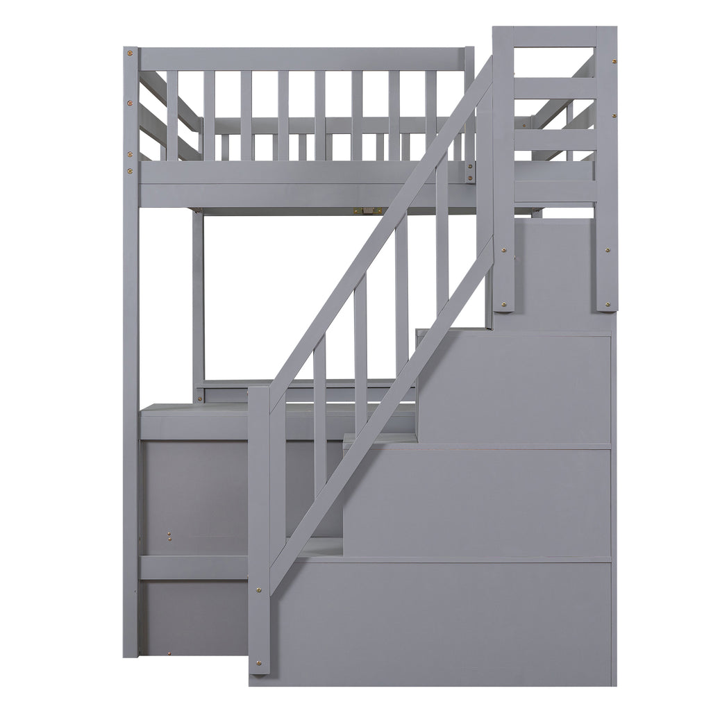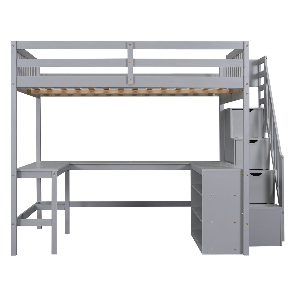 Maximize space with this Full Size Gray Loft Bed, ingeniously designed with an L-shaped desk and integrated storage shelves, perfect for studying and organization. Crafted from durable pine wood, it also features an attached storage staircase, providing ample room for essentials while ensuring stability. This versatile, space-saving loft bed creates an ultimate sleep and study solution, making it ideal for any room.
