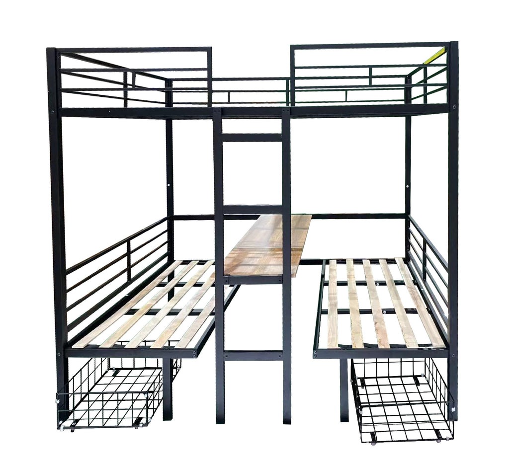 This bunk bed boasts a solid metal construction, ensuring long-lasting durability and unwavering stability. Enhanced with full-length guardrails, it prioritizes safety, effectively preventing falls and cultivating a secure sleeping environment. Having successfully passed Children's Product Certificate (CPC) tests, this bunk bed offers reliable protection against unintended harm, establishing a safe and enduring sleep space for your child.
