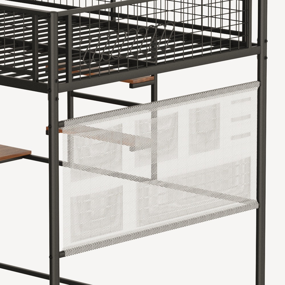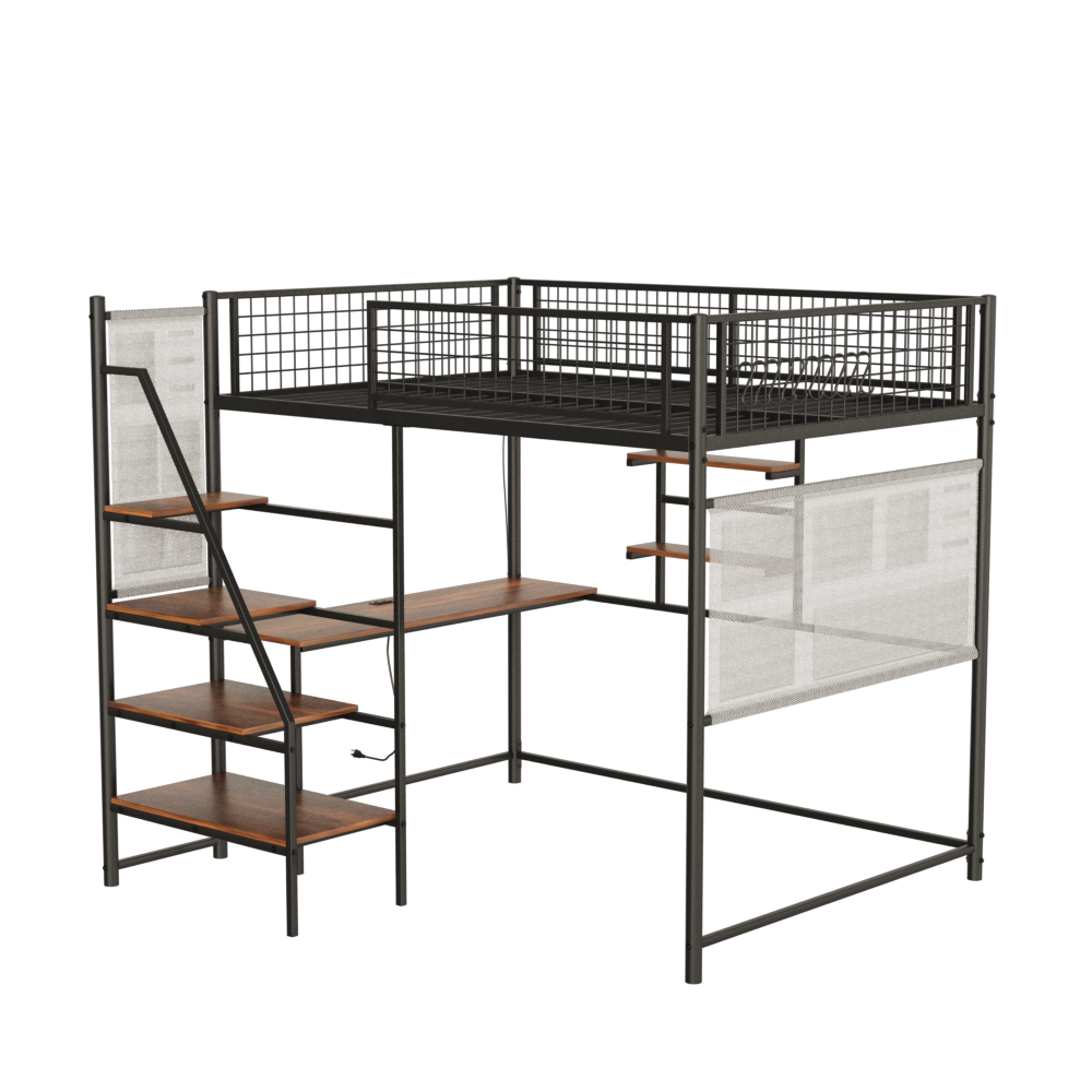 - 【Loft Bed with Desk】The full size loft bed can be configured as two separate spaces. While satisfying rest, the under the top bunk bed provides more personal space for work or leisure. Built-in desk and a charging station in front of the desk,creates a productive, simple work,study or gaming area for your child. Perfect for space-saving needs.