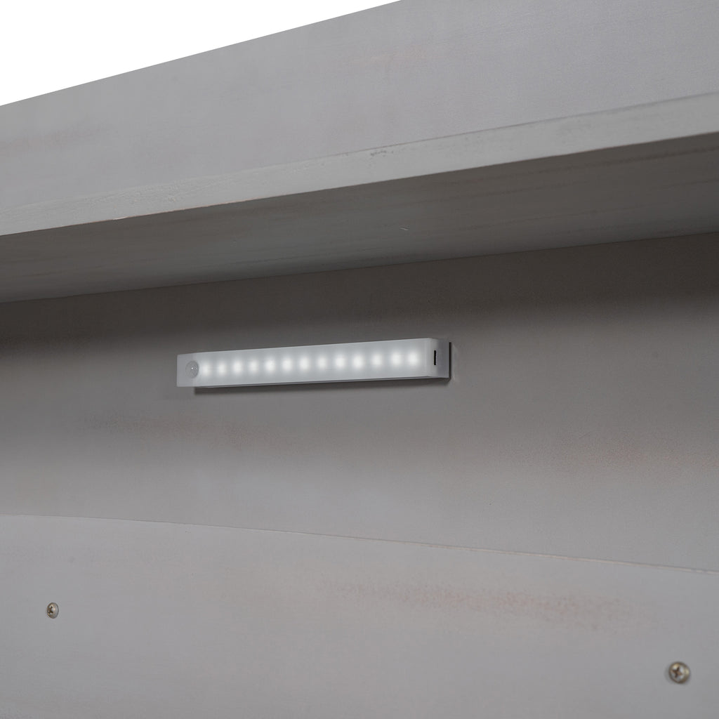 Elevate your bedroom with this full-size antique gray platform bed, featuring a classic solid wood design that eliminates the need for a box spring. The multi-functional headboard boasts integrated LED lighting and ample storage shelves, perfect for books and devices. Enjoy enhanced safety with built-in guardrails and lasting durability thanks to its sturdy pine wood and MDF construction.
