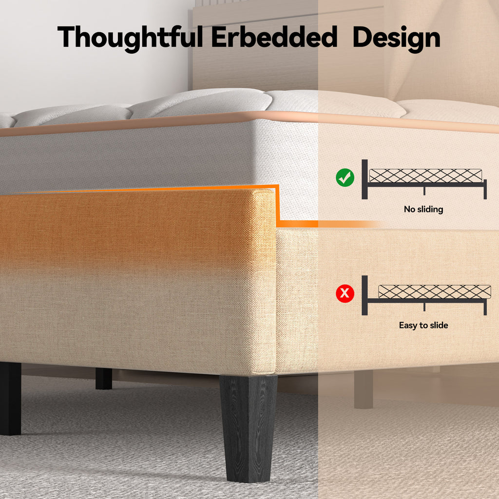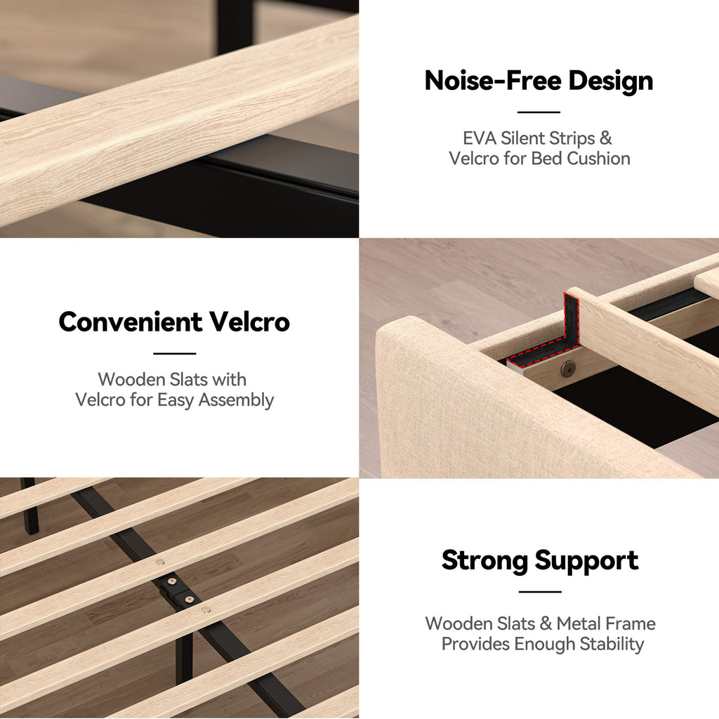 - 🔇 Silent Night Guarantee with Noise-Free Engineering Full Bed Frame: Sleep undisturbed! EVA sound-absorbing foam + Velcro-secured slats prevent shifting and squeaks. Sturdy construction evenly distributes weight (supports 700 lbs) full size bed, ensuring tranquil rest—no more creaky interruptions!