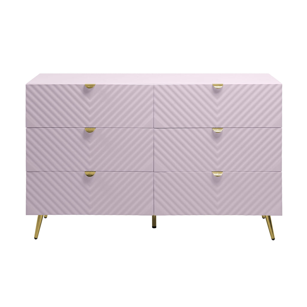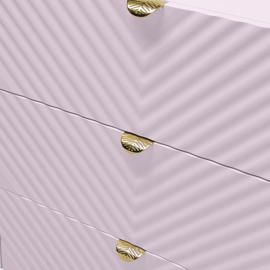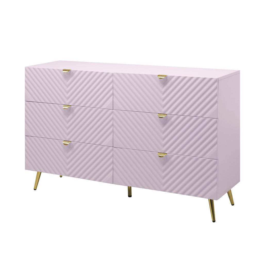 - High Gloss Finish, Wave Pattern Design, Metal Legs, Side Metal Glide Drawer, 2/3 Extension
