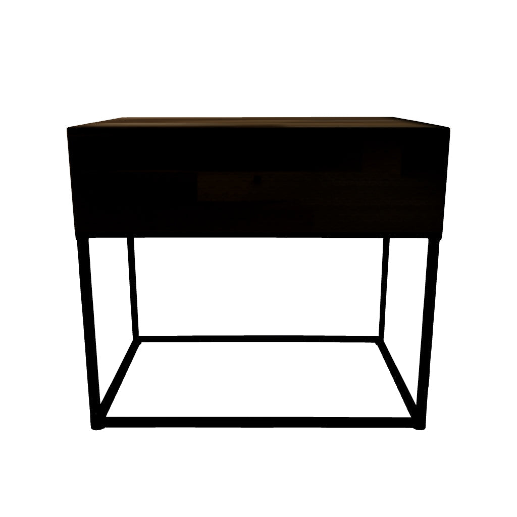 This cool end table offers a fresh take on urban style with a casual design and replicated butcher block finish. The metal base elevates the table and provides open space to add a lightness to your room.