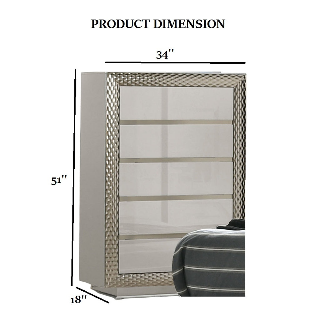 It features a sophisticated gray color with a luxurious satin fabric accent, blending contemporary style with high elegance. Crafted using engineered wood, solid rubberwood, and satin fabric, offering durability and refined aesthetics. Sits on a plinth base with silver molding, and even features a glass shelf as an added design element.