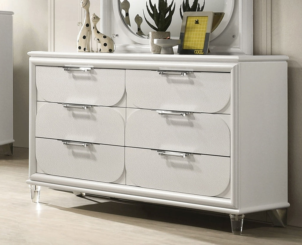 Coming in a bold color, this dresser stays true to its glam roots. Between the classy, acrylic handles and front legs gives it a eye-catching look to your room, it is designed for the sophisticated urbanite and their modern city oasis.