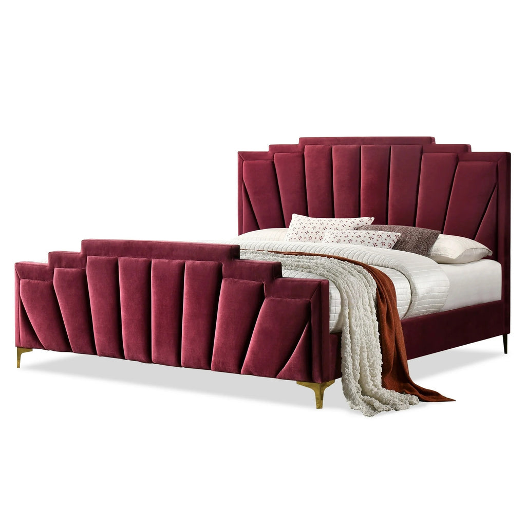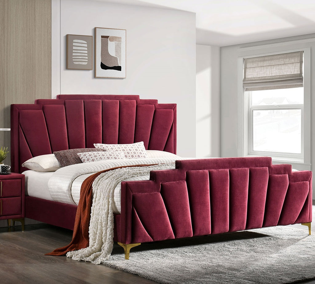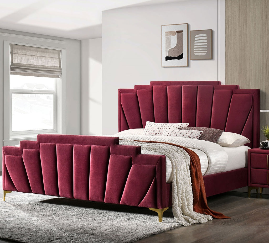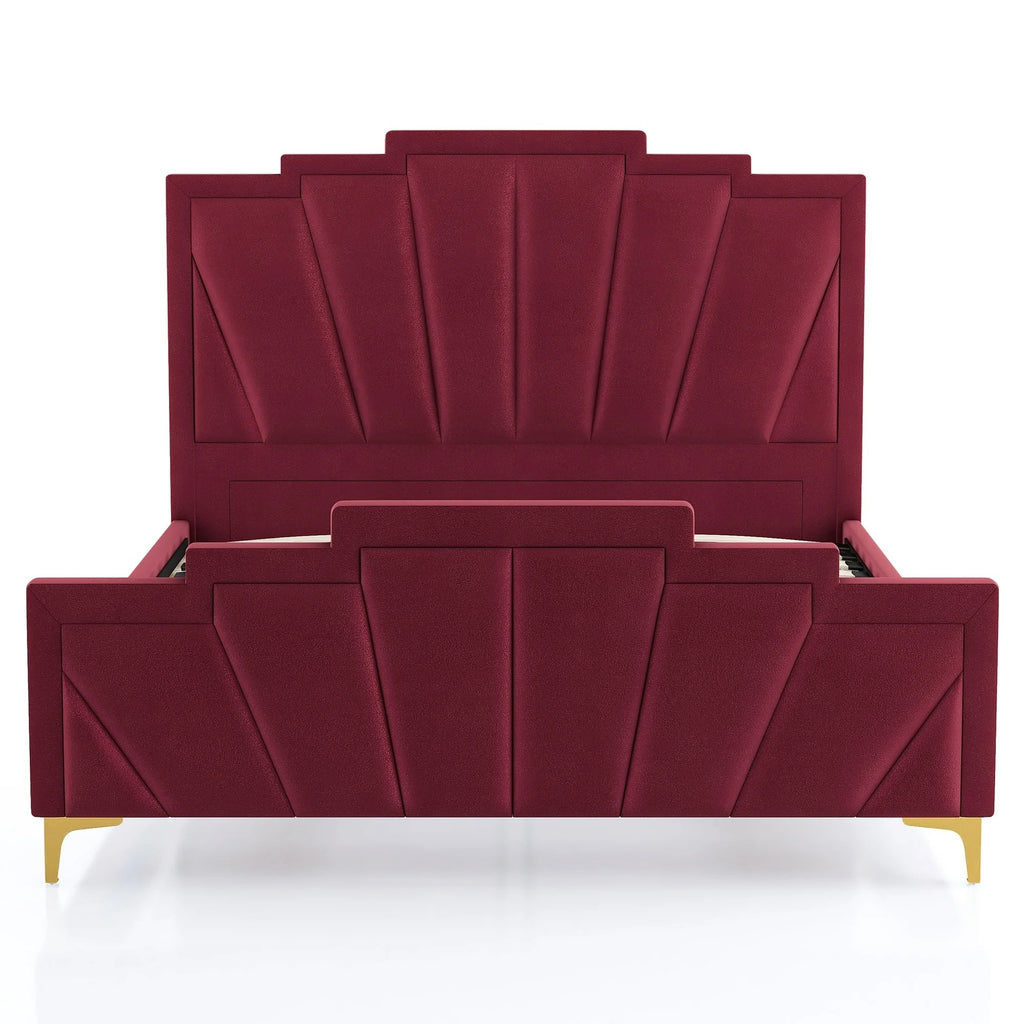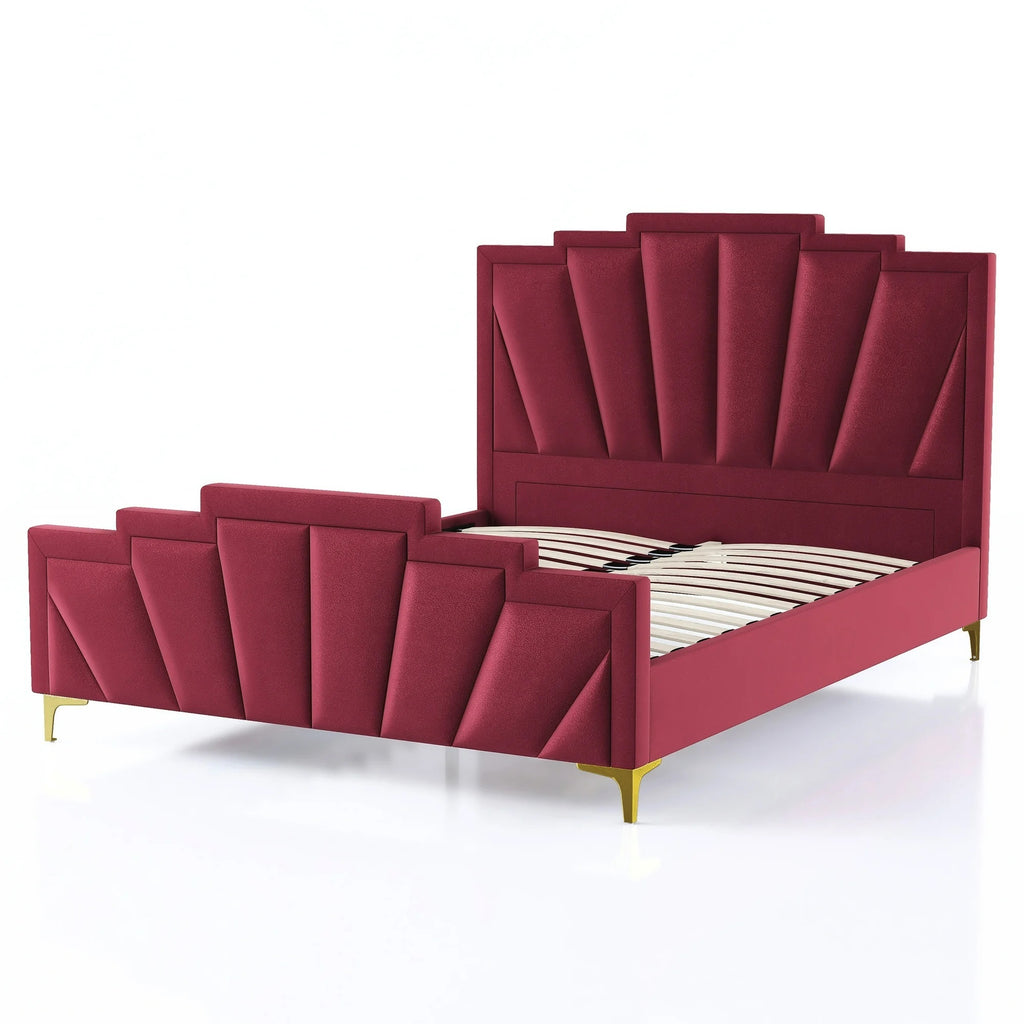 Coming in a bold color, this bed stays true to its glam roots. Between the classy, shell tufting and the gold-coated steel legs, it is designed for the sophisticated urbanite and their modern city oasis. The thick and padded headboard and footboard are upholstered in soft flannelette, so are the side rails and the rest of the piece--luxury and comfort rolled into one stunning product.