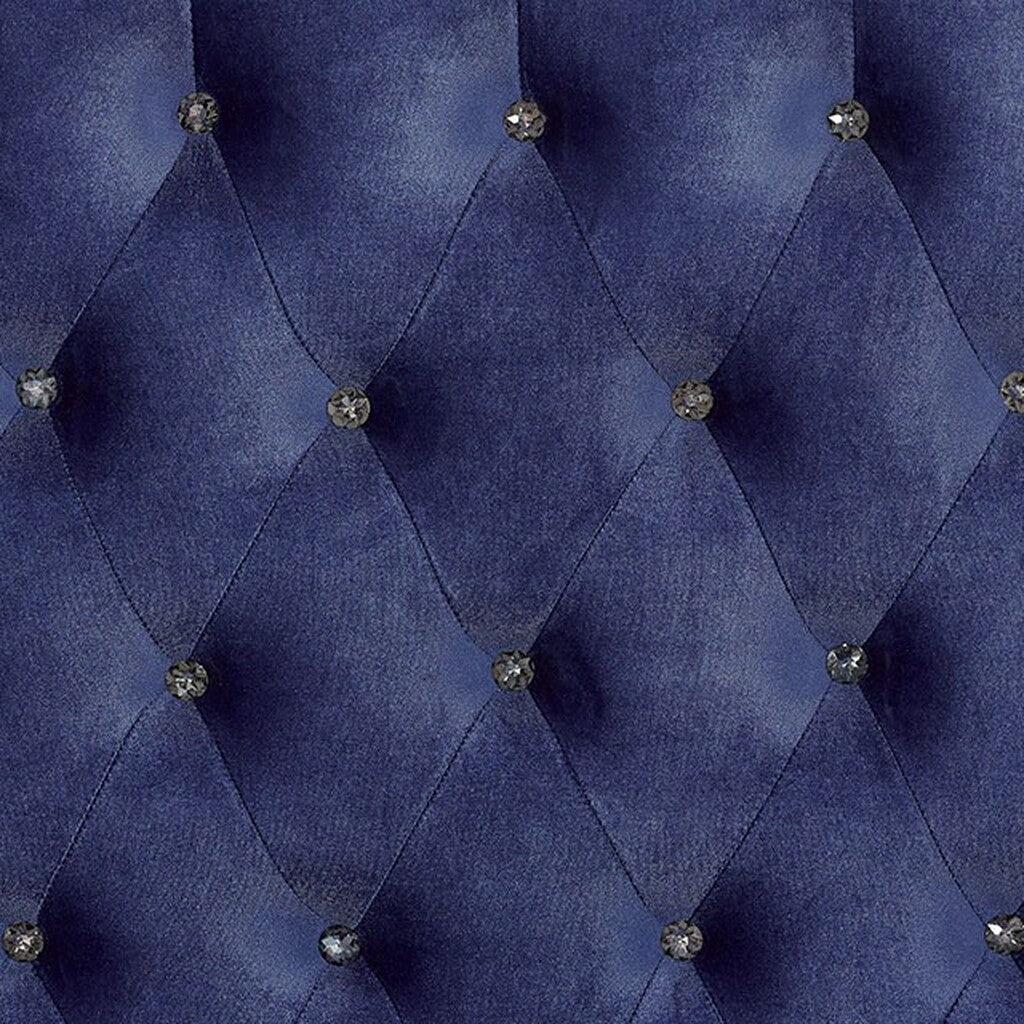 Glam Blue Velvet-Like Fabric, Solid Wood, Wood Veneer, Others Padded Flannelette Fabric Button Tufted Crystal-Like Acrylic Buttons Nailhead Trim Wingback Design Cabriolet Legs