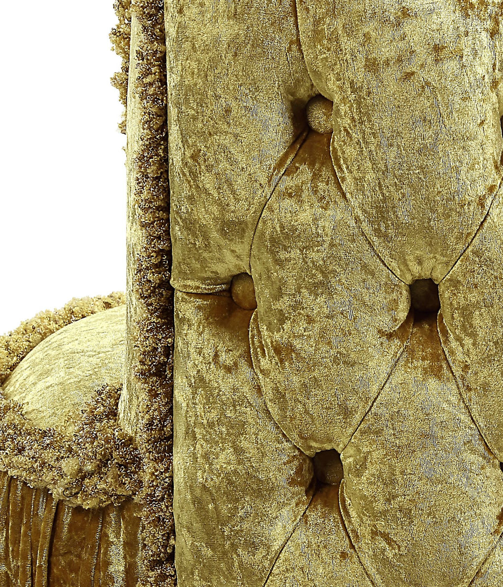 - Diverse materials and ornamentation accentuate the piece's richness and decor style