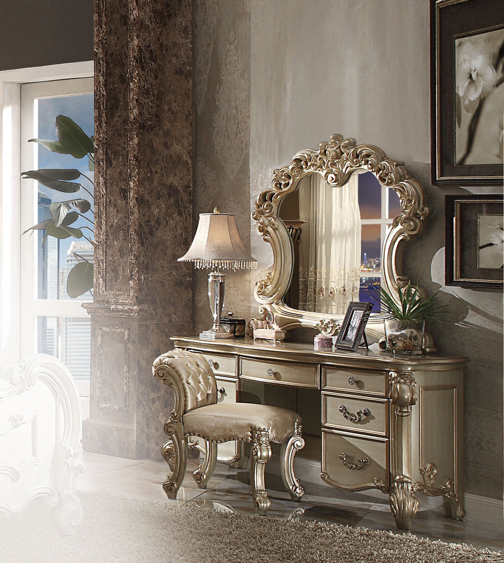 - Supported by scrolled legs made of poly resin with an antique contrast finish, the piece provides sturdy support with a vintage-inspired aesthetic that complements traditional or classic decor styles
