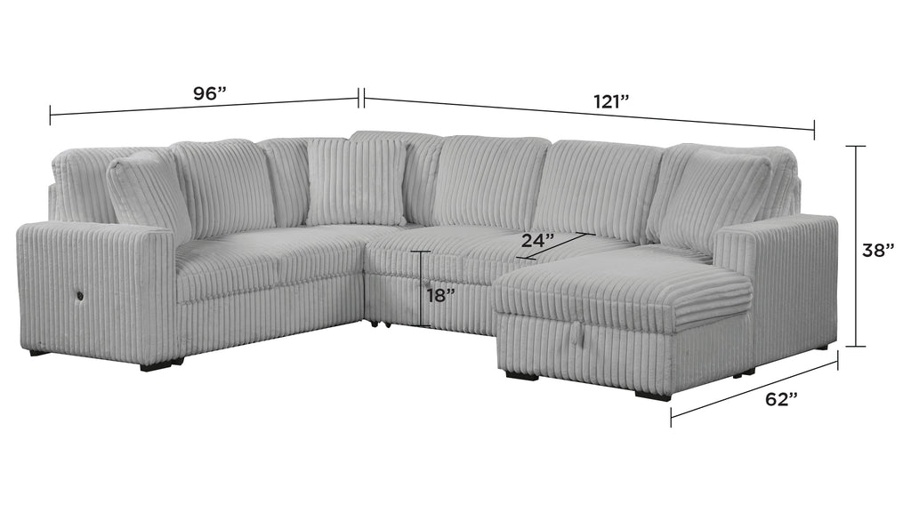 This luxurious sectional sofa combines style and functionality to transform your living room into a space of comfort and elegance. Designed with plush seating and a sleek, modern aesthetic, it offers the ultimate lounging experience during the day and easily converts into a cozy bed for the night with its integrated sleeper function. The chaise is equipped with convenient built-in storage, perfect for keeping your essentials organized and out of sight. With USB ports incorporated into the design, you can stay connected and charge your devices with ease. Available in sophisticated colors like Cream, Gray, and Black, this sectional complements various interior styles and adds a touch of luxury to any space.