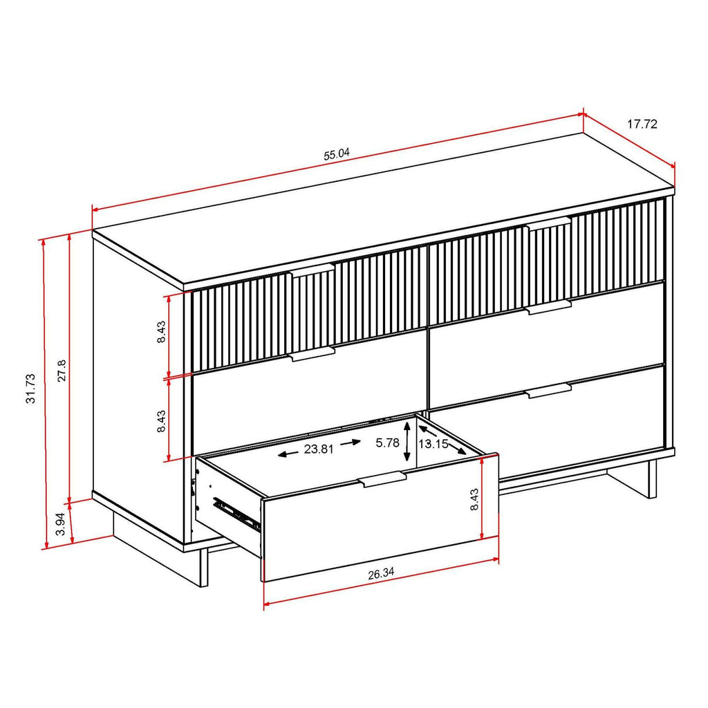 - Includes 6 Full Extension Drawers with Top Drawer Designed in Vertical Textured Ribbed Lines Made from Solid Wood.