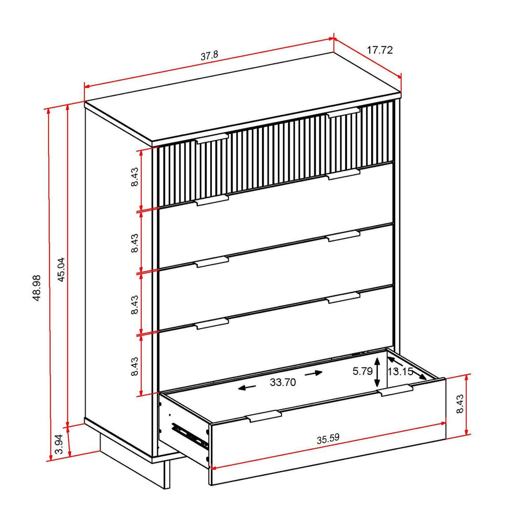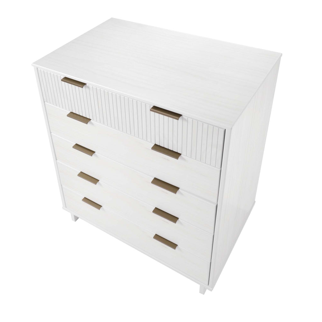 - Includes 5 Full Extension Drawers with Top Drawer Designed in Vertical Textured Ribbed Lines Made from Solid Wood.