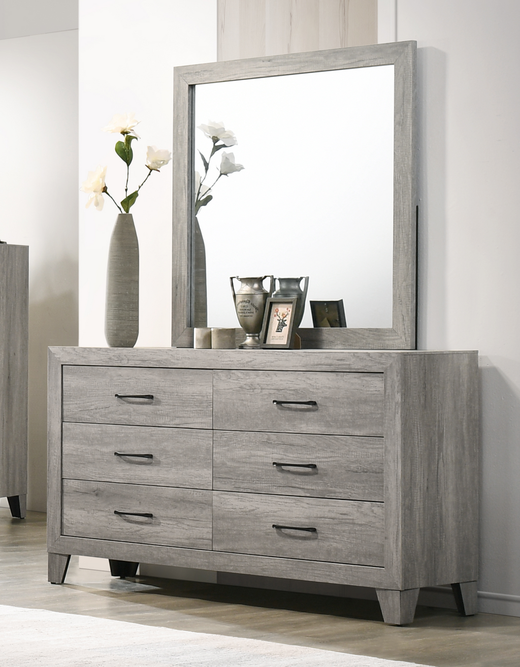 Reach your design goals in your bedroom with this Dresser. This Dresser features a wood grain finish. Incorporate this into your bedroom to give your space a refined touch.