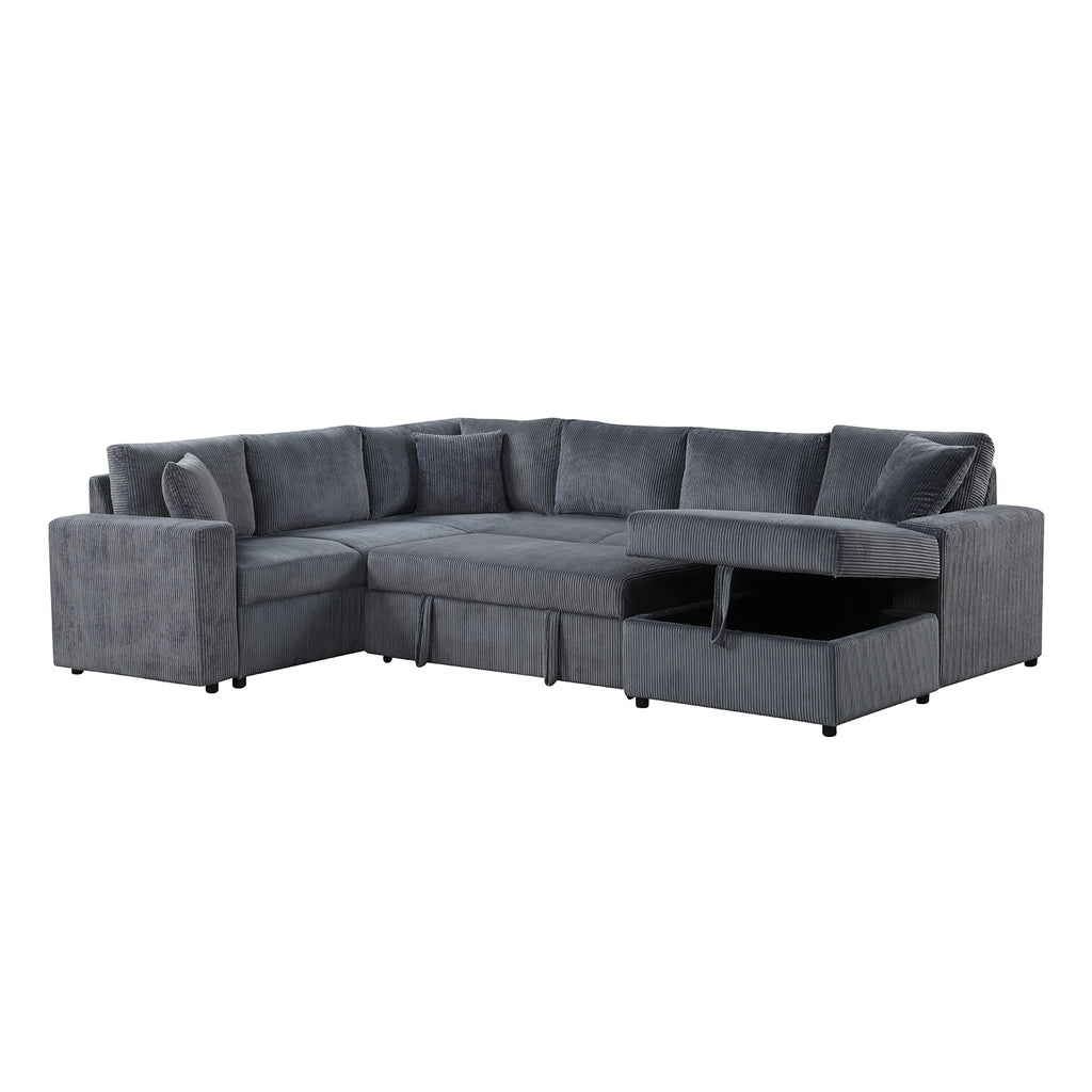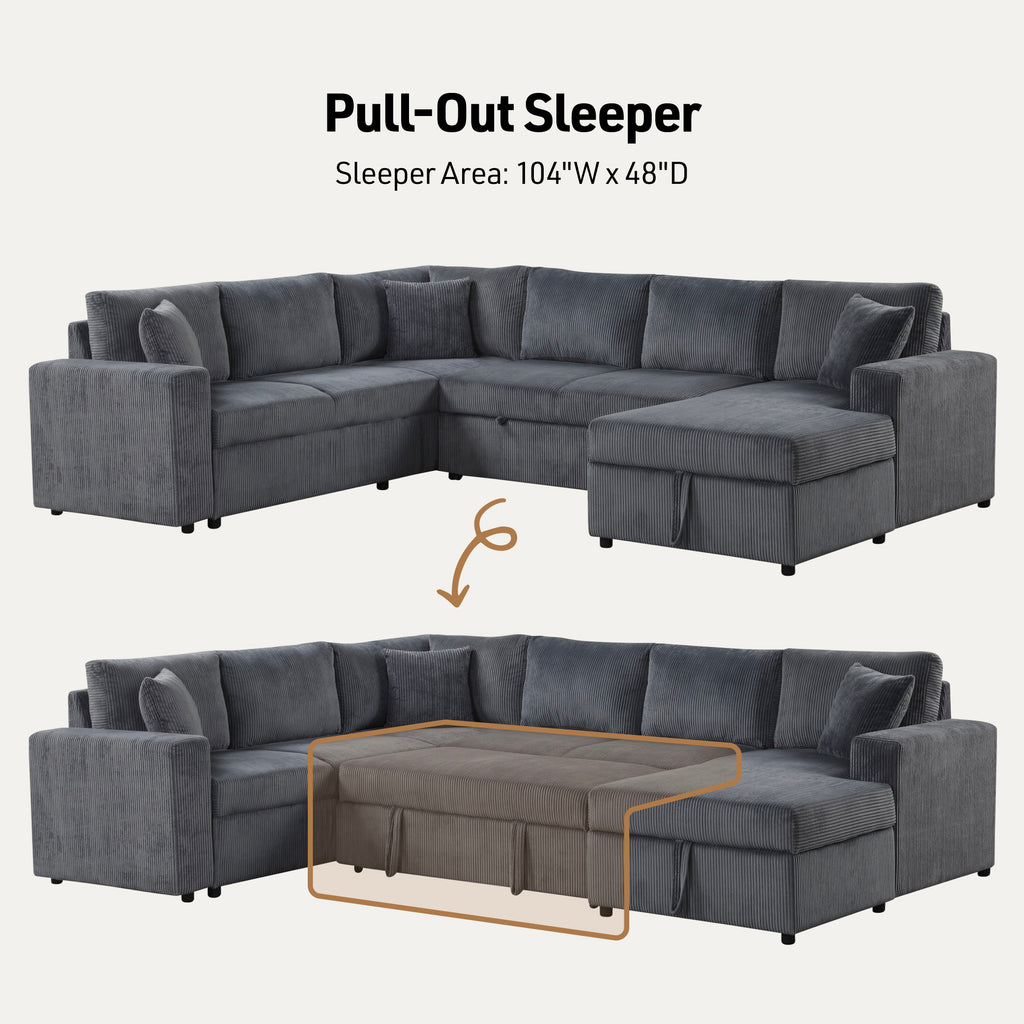 Maximize comfort and functionality with the corduroy sleeper sectional sofa—designed for modern living. Upholstered in ultra-soft corduroy, it offers plush seating, a spacious layout, and a cozy texture you'll love. The right-facing chaise features hidden storage, perfect for keeping blankets or essentials out of sight. Effortlessly convert it into a sleeper for guests or movie nights.