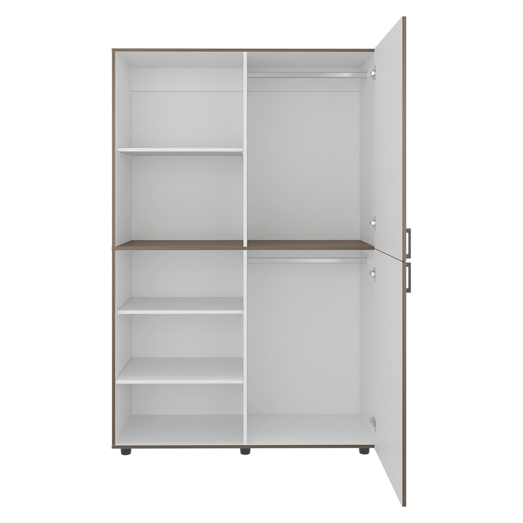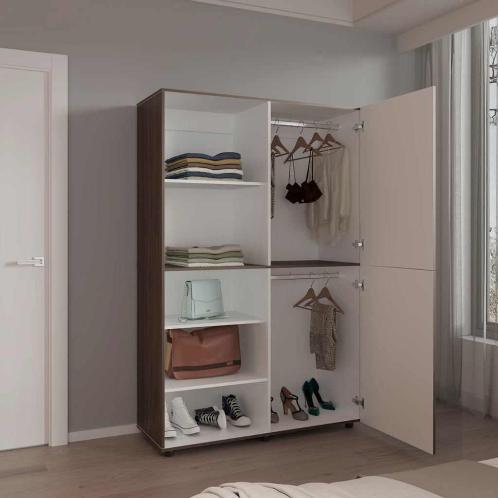 - Spacious design: Two large compartments with hanging rods and open shelving.