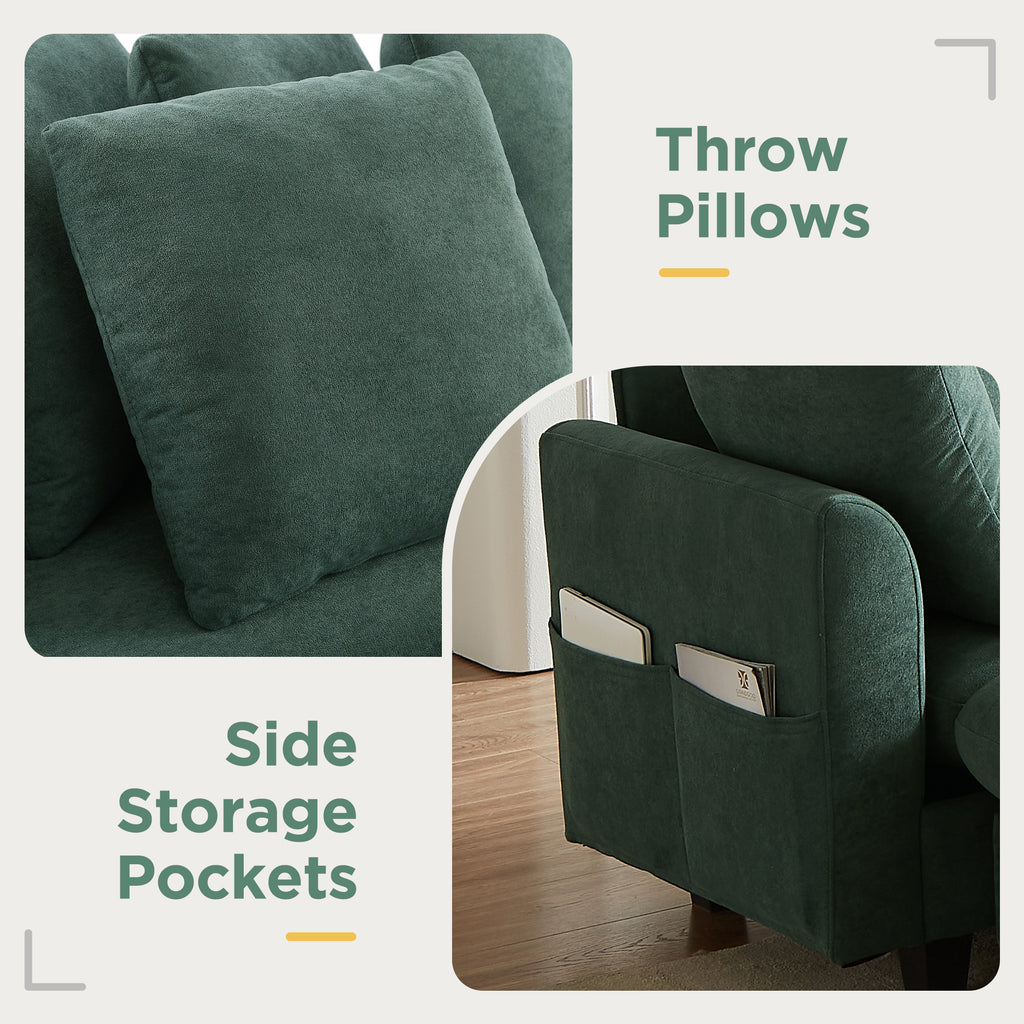 - Convenient Side Storage Pockets - The sides of the sofa feature built-in storage pockets, which are perfect for stashing remote controls, reading materials, or your phone. These accessible compartments keep everyday essentials within easy reach while maintaining a clean, organized living room.