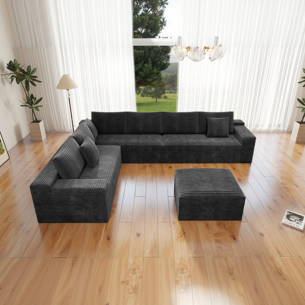 - Modular Sectional Sofa:This sectional sofa featuring a sleek design, clean lines, and high-quality plush corduroy Fabric,This sectional set maximizes space when placed against a wall,this corner sofa effortlessly adds a timeless and sophisticated touch to your home. Designed to be the focal point of attention, it's an ideal choice for elevating the ambiance of living rooms, apartments, and bedrooms.