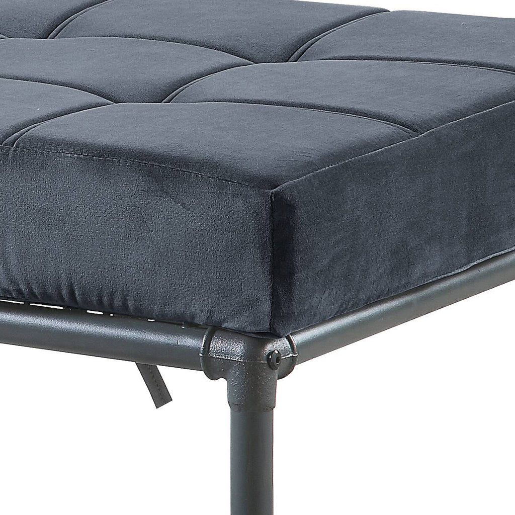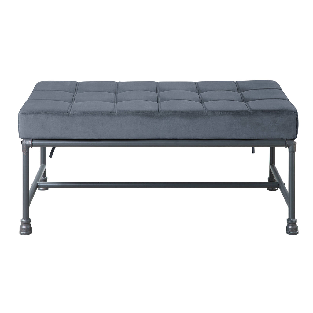 This furniture piece features a unique industrial-inspired design reminiscent of water pipes, adding a rustic and distinctive look, complemented by soft and stylish grey velvet upholstery for a sophisticated appearance. The button-tufted tight seat cushion and sleek metal legs provide a modern edge, while D20 density foam cushions ensure lasting comfort and durability.