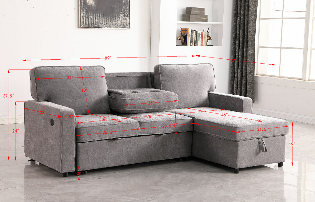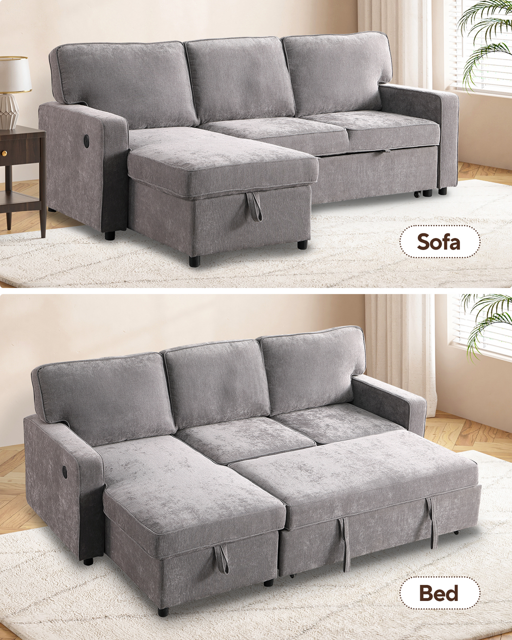 - The chaise section of the sofa bed offers ample storage space, allowing you to keep your living room tidy and organized. Store extra blankets, pillows, or any other essentials within easy reach.