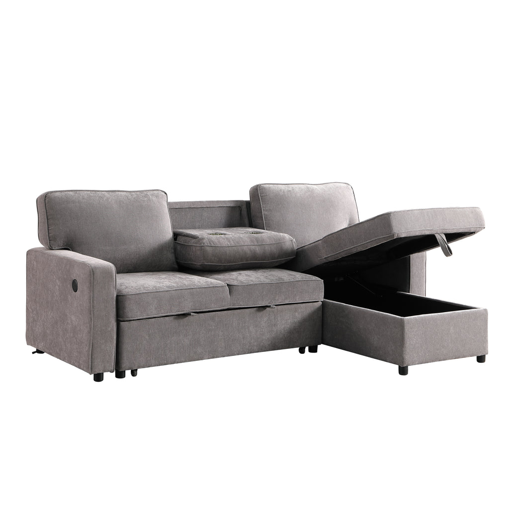- Enjoy ultimate convenience with the built-in cup holders and USB port. The middle seat section of the sofa bed includes cup holders, providing a designated spot for your beverages. Stay connected and keep your devices charged with the integrated USB port, ensuring you are always powered up.