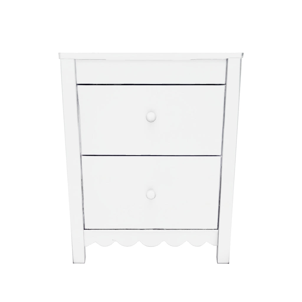 Thanks to its playful scalloped design, this nightstand is the perfect fit for cottage or coastal farmhouse interiors. The matte white finish serves as the perfect backdrop to showcase your personal taste and creativity. And its spacious drawers let you say goodbye to clutter and hello to well-organized whimsy.