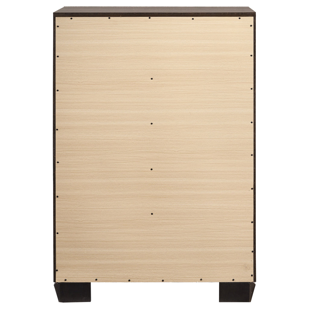- Five-drawer chest features a mid-century modern silhouette that adds retro charm to contemporary bedroom or living spaces