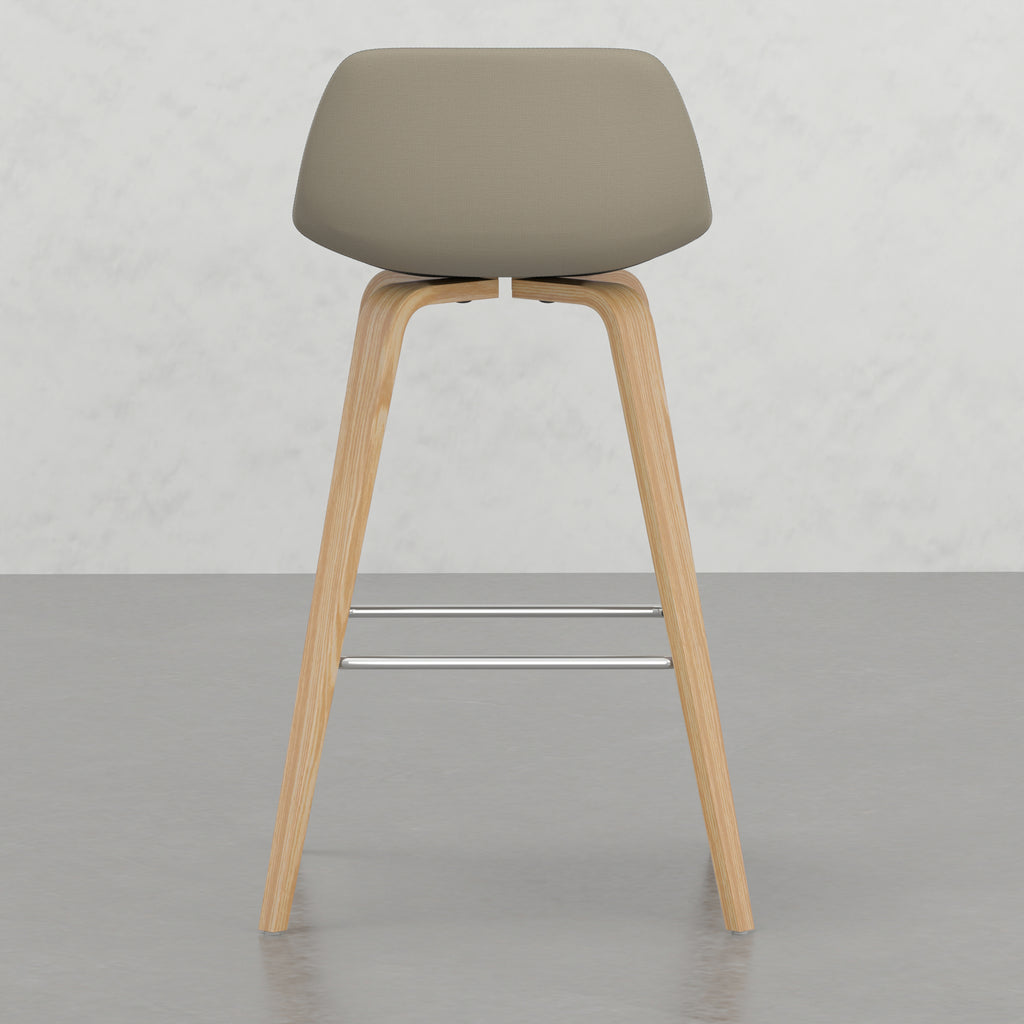 - Upholstered with a Natural linen-look fabric on the curved seat and back.