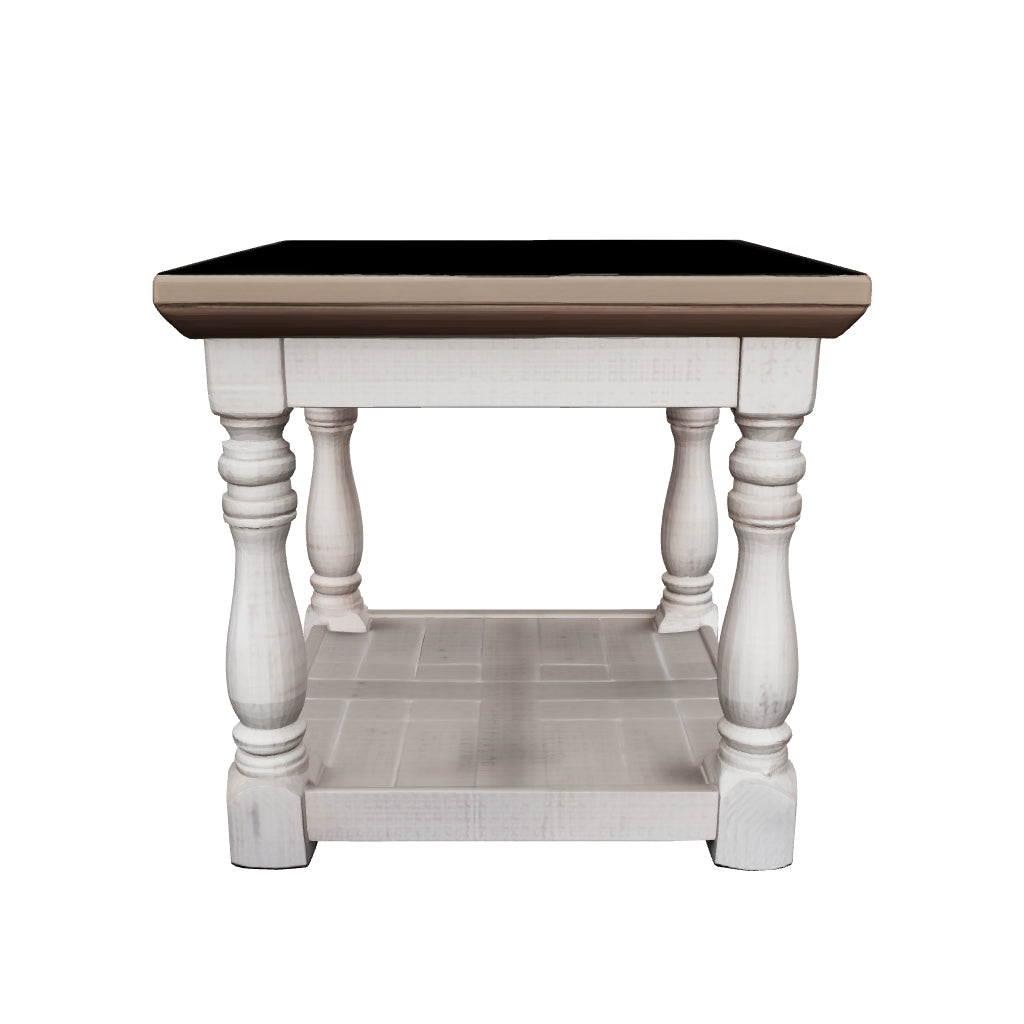 With its richly rustic finish and textural mix, this end table goes to town on bygone beauty. Distressed two-tone treatment blends a weathered gray with vintage white for an utterly charming effect. Robust legs lend a hearty, substantial look that feels right at home.