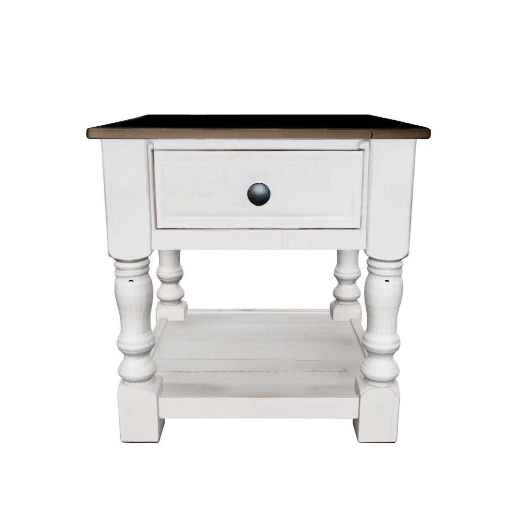 What a fresh interpretation of country classic style. Inspired by American farmhouse craftsmanship, but with an elevated sensibility, this square end table blends distinctive details such as turned post accents and raised drawer fronts for a substantial look that feels right at home. Those who appreciate rustic character should take note of the table’s thick crown moulding, beautified with a vintage two-tone finish. Robust legs lend a hearty, substantial feel ready to withstand the test of time.