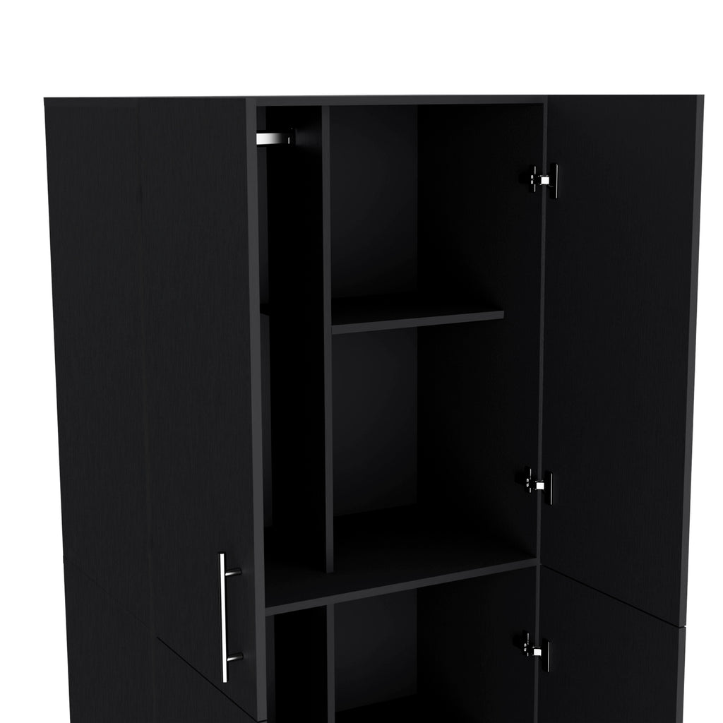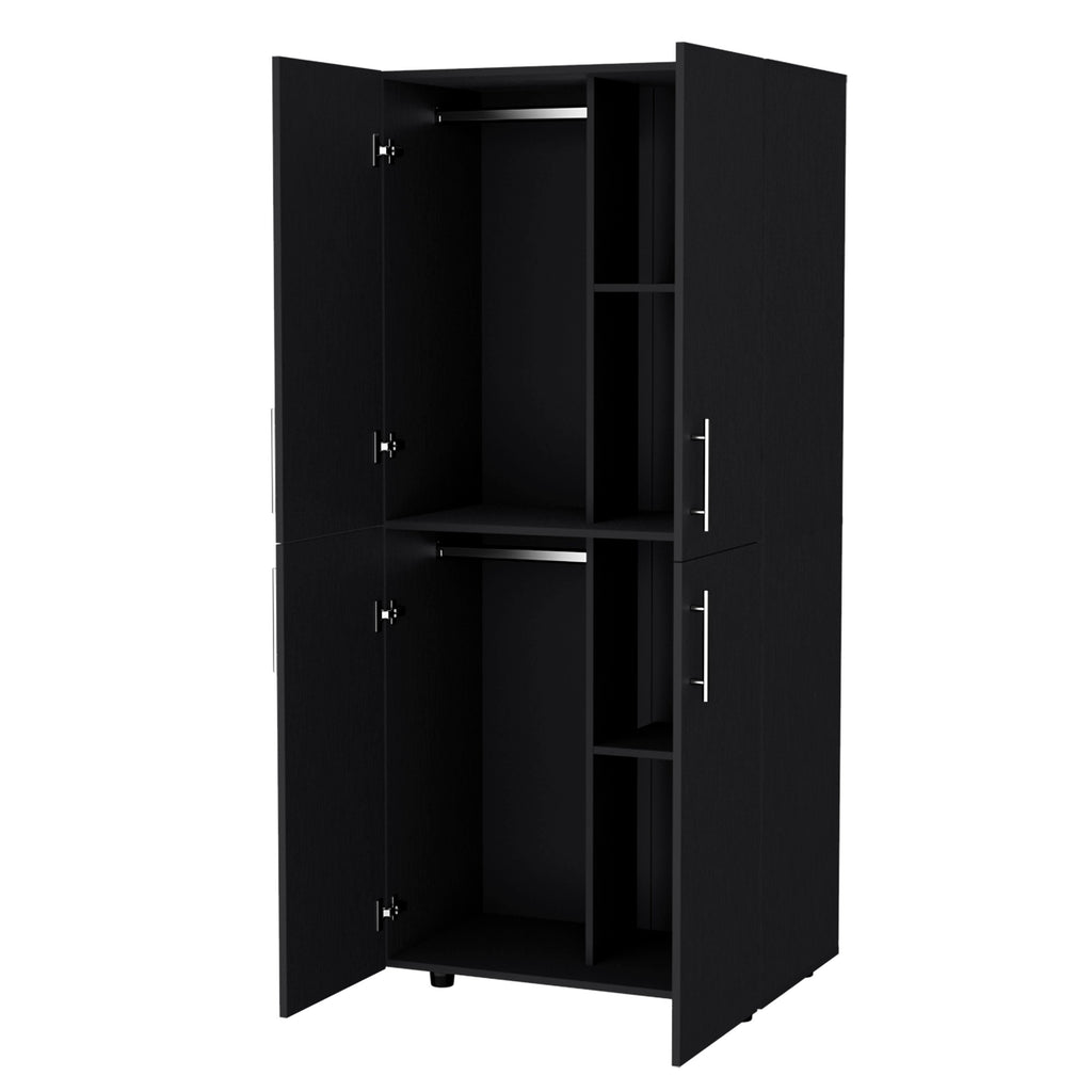 FM FURNITURE Hazel Armoire in melamine with 2 doors , 4 shelves and 2 clothes hanging bar , Black -